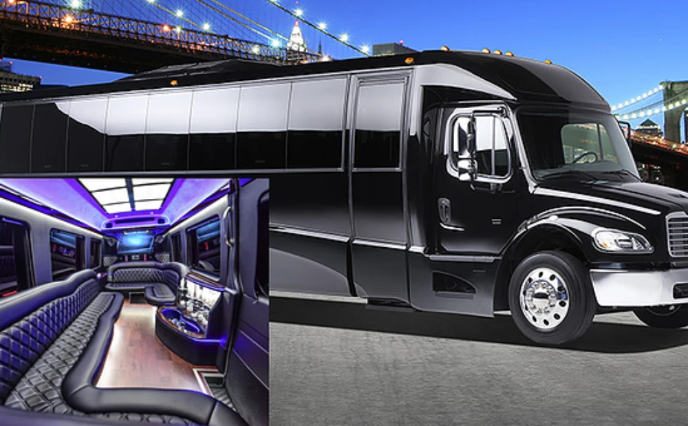 The VIPRide Limo Coach / LimoBus combines the spacious capacity of a bus with the upscale features of a limousine. Designed for 16–35 passengers, these custom vehicles create the ultimate party atmosphere with wraparound leather seating, premium sound systems, fiber-optic lighting, and bar setups.